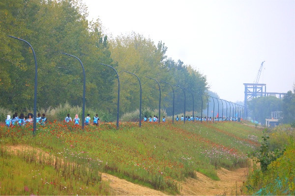 上半場是公司團(tuán)建活動,全體人員徒步走路線:青奧森林公園→江堤路→粉黛花田→洲島家園。(約10公里)